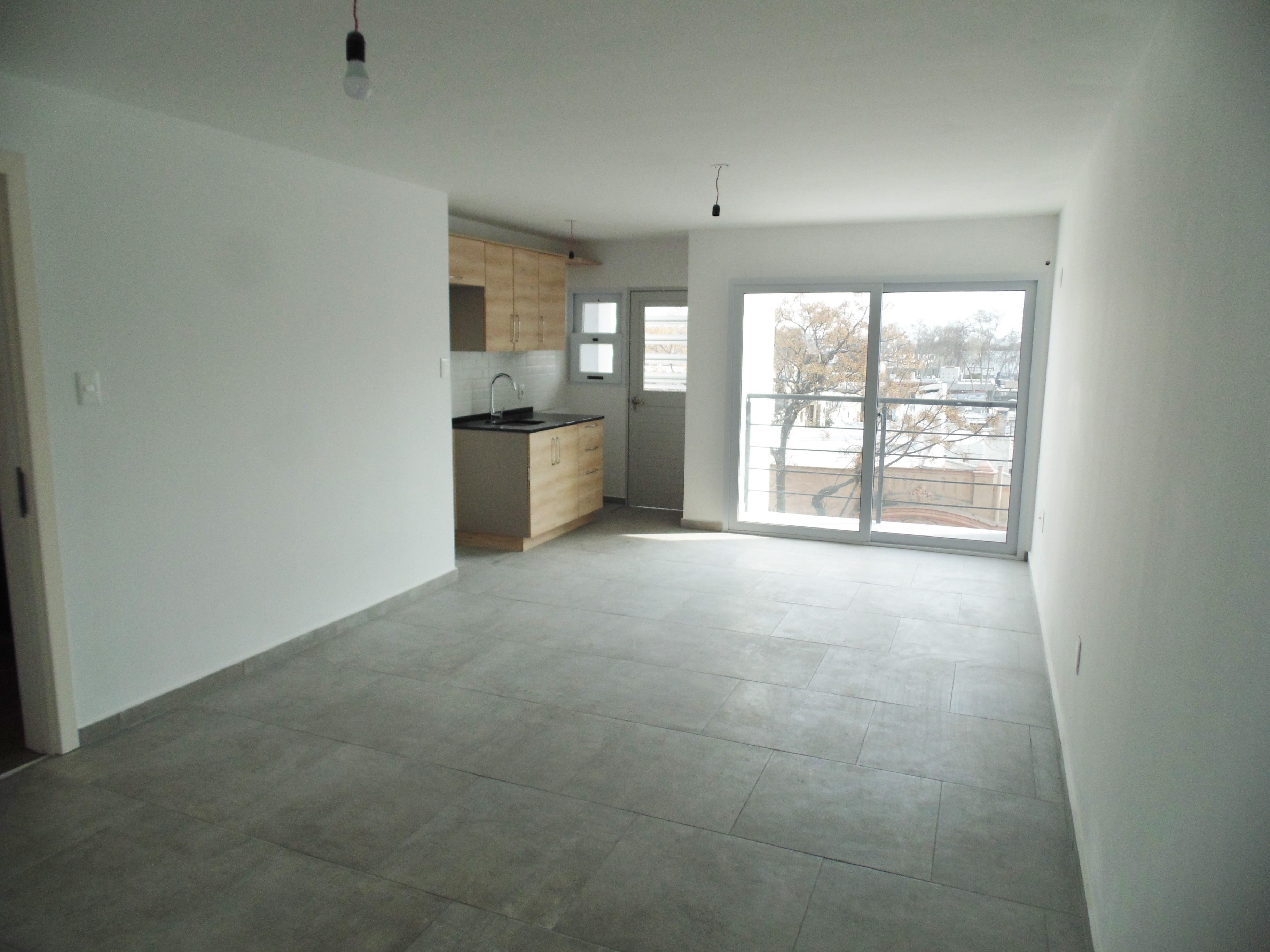 Living comedor con cocina integrada (opción dividirla)