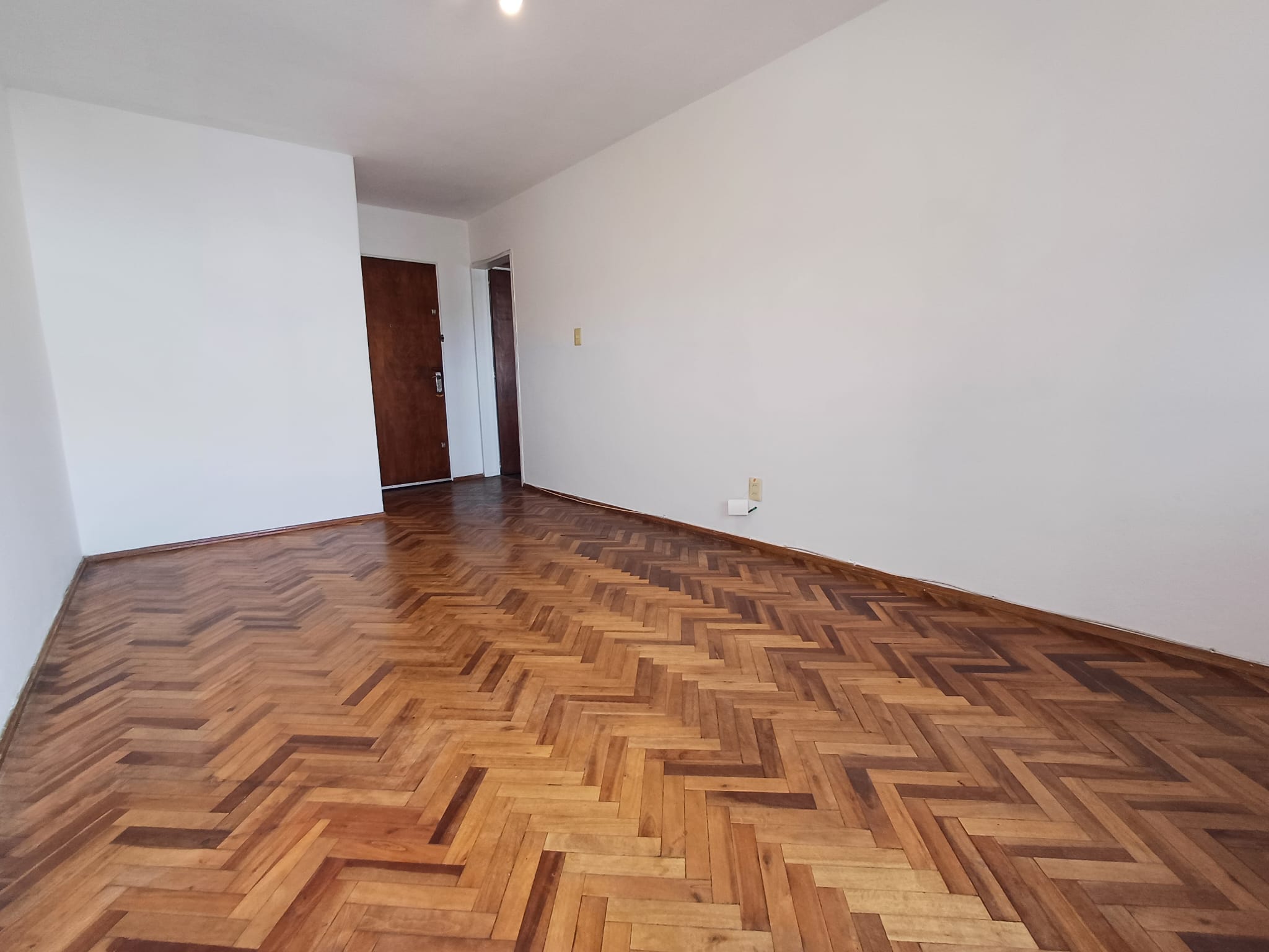 Amplio living comedor con piso parquet.
