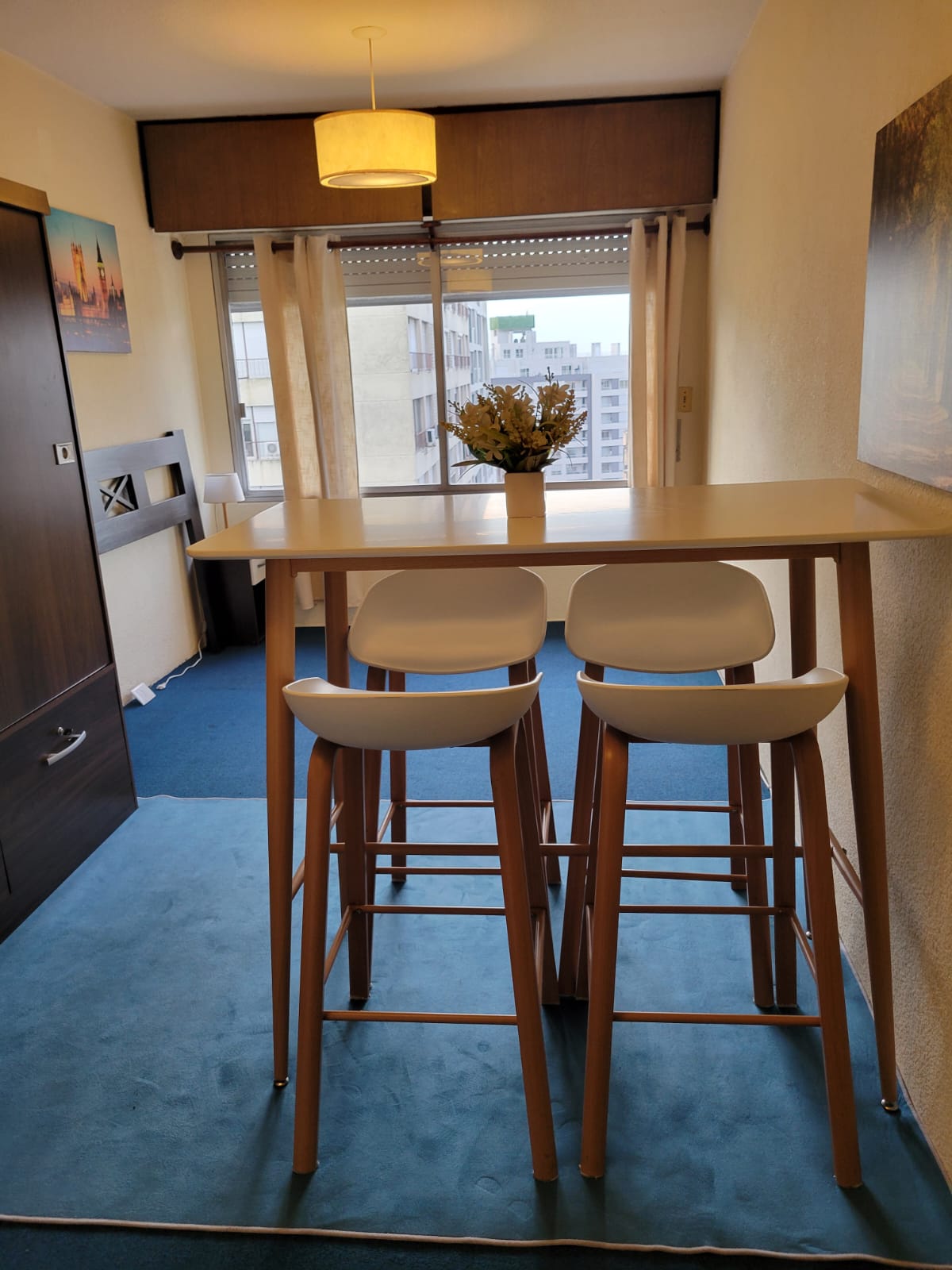 Ambiente con placard, Kitchenette, heladera, microondas.